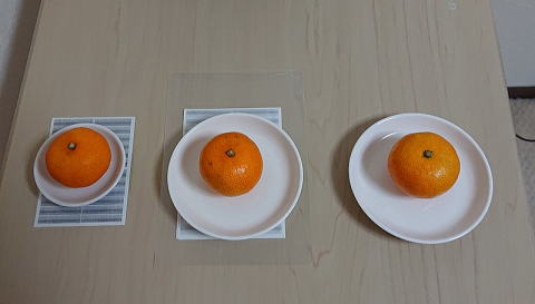 これを縮小コピーしたものの上に、ミカンを置いてみることにします。